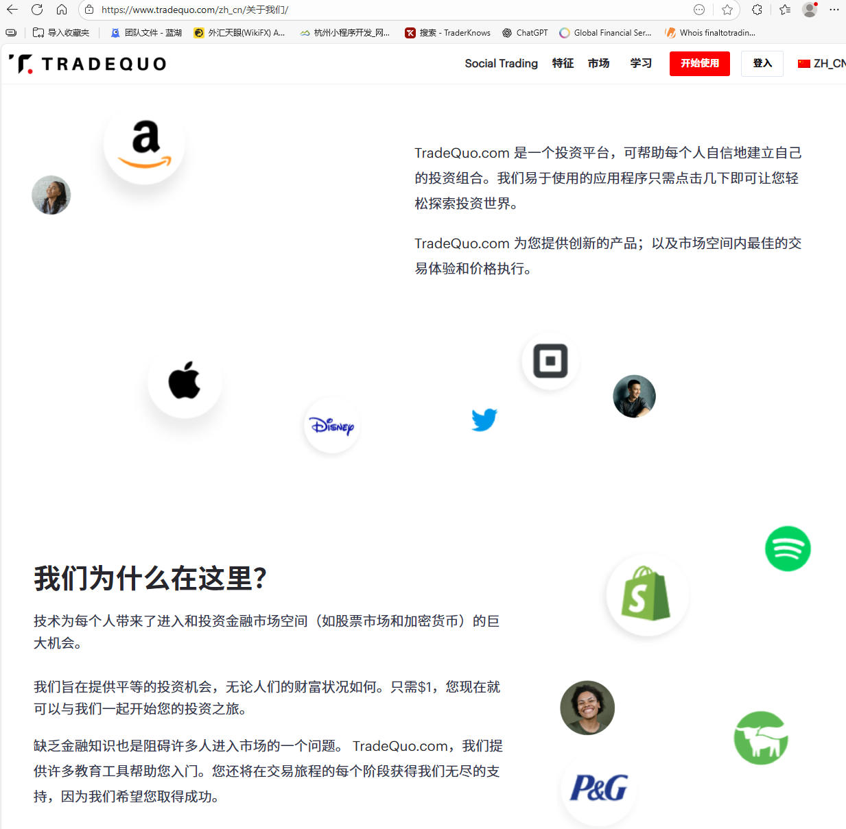 在TradeQuo的官方网站中,完全找不到任何关于公司主体的信息。例如公司名称、注册地、监管编号或牌照信息均未披露。一个正规运营的金融平台通常会在官网清晰展示公司背景与资质,而TradeQuo的“空壳式”网站更像是为规避追踪而搭建的幌子。