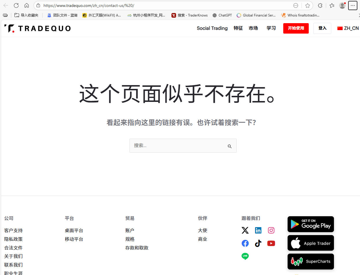 更值得警惕的是,www.tradequo.com网站的“联系我们”页面已经无法访问。这意味着投资者失去了与平台沟通的最基本渠道。如果一个交易平台甚至不提供任何客服或联系方式,其跑路风险极高。