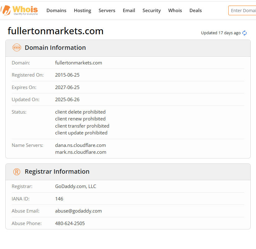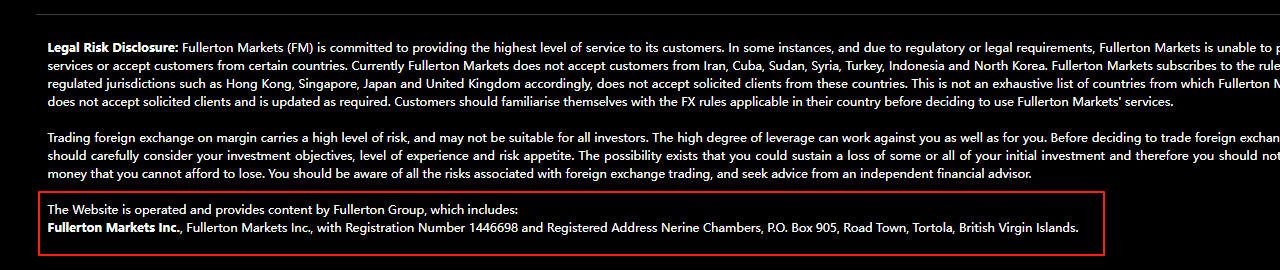 FULLERTON平台官网域名(fullertonmarkets.com)的注册所有者信息不够详细,缺乏公司法人或合法机构的明确指向。这种不透明性增加了投资者在出现纠纷时追责的难度,也削弱了平台的可信度。