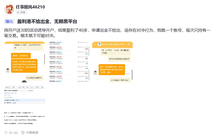 根据网络公开投诉,有用户反馈该平台存在 无法出金 的情况。这类问题是典型的高风险交易平台特征,意味着平台可能存在资金链问题,或有意通过技术手段阻碍提现操作,甚至存在诈骗嫌疑。