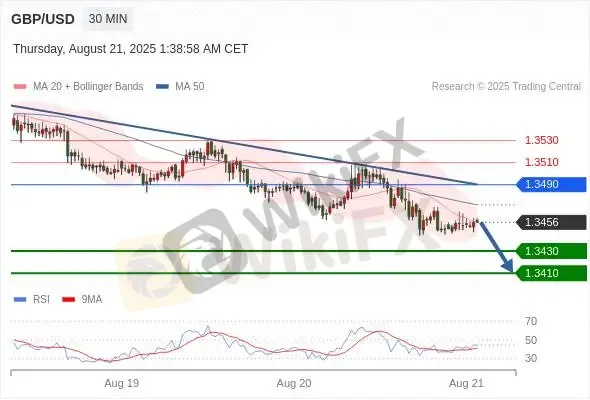 交易策略: 在1.3490之下,看跌,目标价位为1.3430,然后为1.3410。